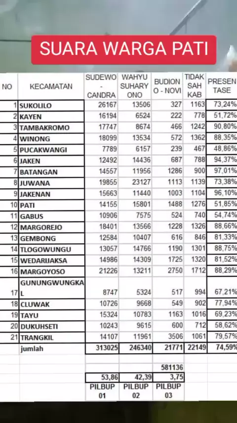 Hasil sementara pilkada 2024#pati#jawatengah#sudewo @H. Sudewo, S.T., M.T. @Risma Ardhi Chandra @DU DU WI#pilkada2024