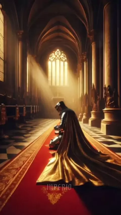 Mesmo em silêncio... meu coração grita por Deus." #FéEmSilêncio #CavaleiroDeDeus #LuzNaEscuridão #OraçãoMedieval #DevoçãoEterna