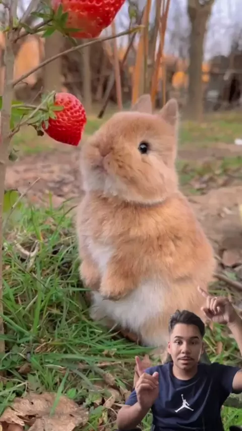 Coelhinho Fofo Saboreando Morangos 🍓🐰 #CoelhoFofo #Morangos #FofoDemais #Natureza"