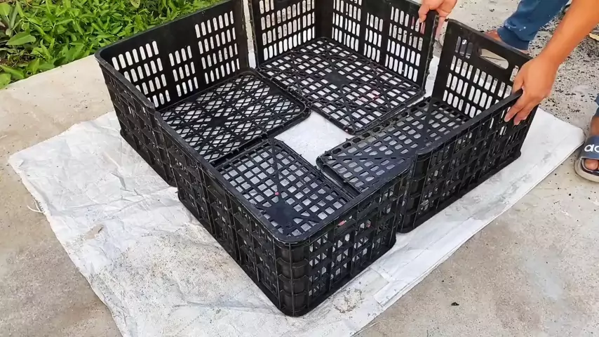 A maneira como o cara fez um lago de peixes de cestas de plástico realmente chamou a atenção da pessoa.