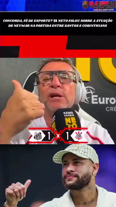 Concorda, fã de esporte? 👀 Neto falou sobre a atuação de Neymar na partida entre Santos e Corinthians e ainda aproveitou para analisar o desempenho de outros jogadores. 📽️: @radiocraqueneto #Futebol #Neymar #Brasileiro #Santos #Corinthians