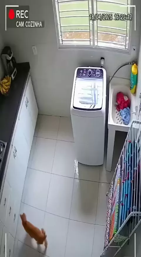 MÁQUINA DE LAVAR ENGOLE GATO 🐈😱 gatinho vê máquina balançando e entra nela, mas fica tudo bem! Mas bem molhado 🤣🤭 #cctv #cat #gato #viral #sora