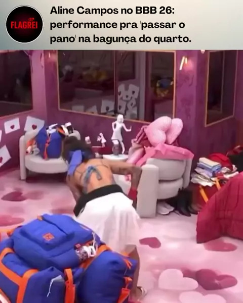 Depois da madrugada agitada com show da Anitta e bagunça geral, Aline Campos resolveu entrar em ação: fez uma performance dançando, plantando bananeira e organizando o quarto todo revirado — mochilas, presentes e itens espalhados por todo lado. A sister tá tentando deixar tudo no lugar enquanto comentações rolam soltas: 'pra que essa performance toda pra passar o pano KKKK'. #BBB #redebbb #flagrei #fofocas