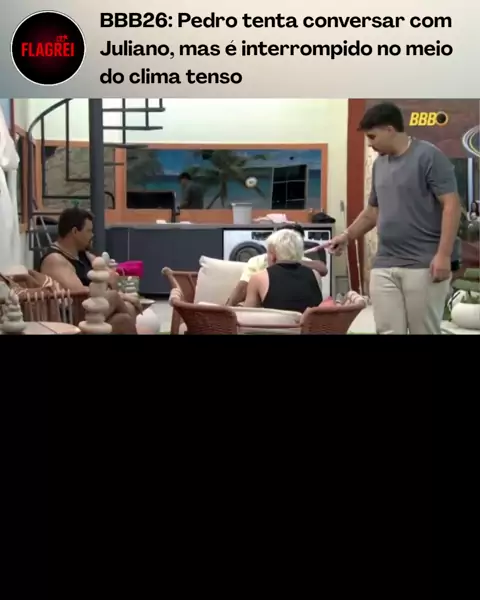 Clima pesado no jardim do BBB26. Pedro se aproximou de Juliano fazendo sinal com o dedo e apontando para a orelha, pedindo para conversar em particular. O momento, no entanto, não avançou. Antes que a conversa acontecesse, Babu Santana, que estava na roda, acabou afastando Pedro dali, encerrando a tentativa de diálogo. Juliano, visivelmente abalado, permaneceu em silêncio, com a cabeça baixa, enquanto o clima seguia tenso entre os participantes. A cena repercutiu nas redes e levantou questioname