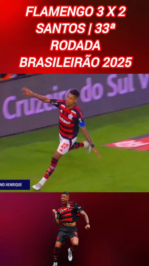 FLAMENGO 3 X 2 SANTOS | 33ª RODADA BRASILEIRÃO 2025 #brasileirão2025 #flamengoxsantos #🇧🇷Flamengo❤🖤 #jogaeganha #⚽Gols Aviãozinho do Bruno Henrique