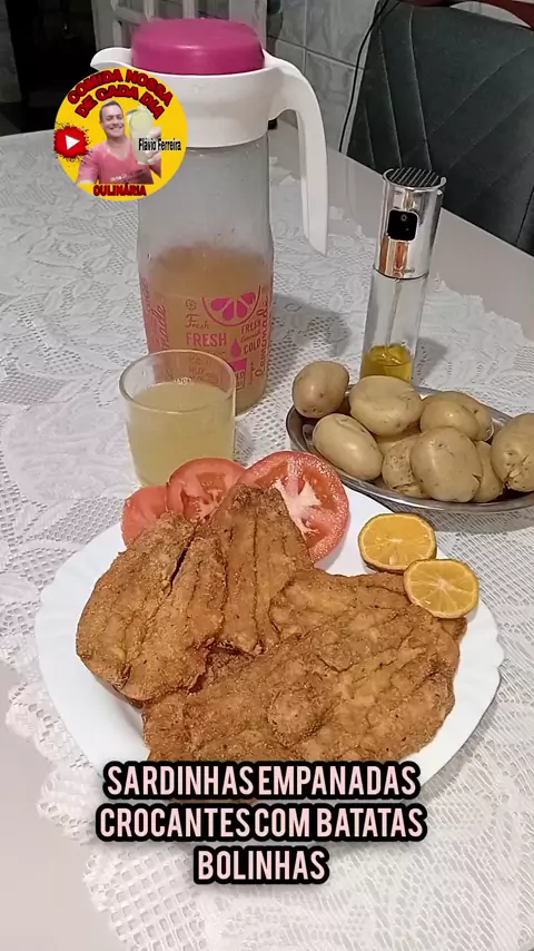 SARDINHAS EMPANADAS CROCANTES COM BATATA BOLINHA. 1 kg de Filé de Sardinha Sal Pimenta Limão Paprica Cominho 5 Colheres de Sopa de Fubá 5 Colheres de Sopa de Farinha de Trigo 1 kg de Batata Bolinha #sardinhafrita #sardinhasempanadas #petiscos