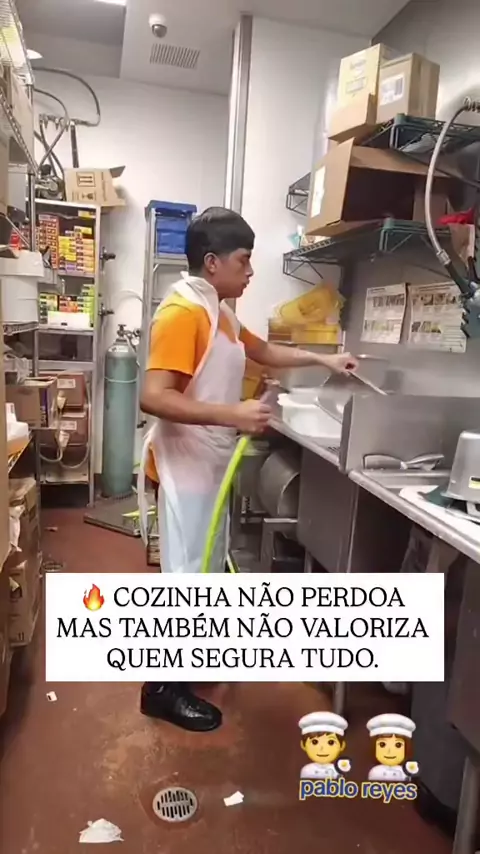 😩Dor nas costas, dor no pé, dor na mão, dor na cabeça… E mesmo assim, você segue. Porque a cozinha não pergunta se você tá bem ela só exige que você entregue. A gente normaliza coisas que não deveriam ser normais: trabalhar sem comer, sem descansar, sem pausa, sem respeito. E acostuma tanto que acha tudo isso ‘parte do jogo’. Mas lá no fundo, você sabe o quanto tudo isso pesa. O quanto custa. O quanto dói. 👉 Siga a página. Aqui é o único lugar onde a dor vira verdade e não desculpa. #cozinha