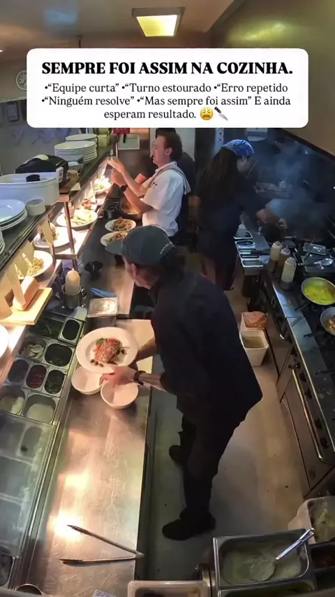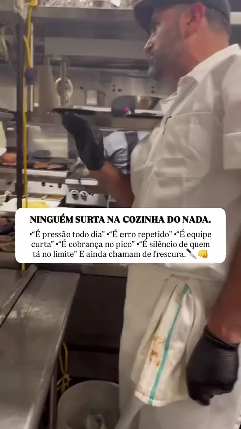 🔥🔪A verdade que ninguém posta é essa: Na cozinha não tem luz bonita, não tem música calma, não tem vídeo slow motion. Tem pressão, tem gente surtando por dentro, tem pedido acumulando, tem panela queimando, tem cliente exigindo perfeição enquanto a equipe tenta sobreviver ao turno. Tem dia que a cabeça vai embora, mas o corpo continua. Tem hora que você respira fundo pra não explodir. Tem momento que você olha pro lado e pensa: “Como é que eu aguentei mais um dia? #cozinha