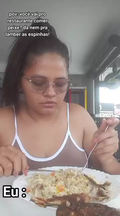 comendo peixe no restaurante.