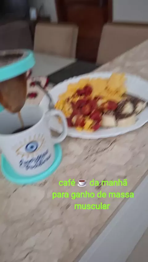 #cafedamanhađŸ˜â˜•â€ para ganho de massa muscular, cuscuz, ovos, salsicha e banana com semente de chia, cafĂ© sem açĂșcar... bora comer pra crescer. #AmooqueFaço #Vem2026NoKwai #vidaboa #Bomdemais