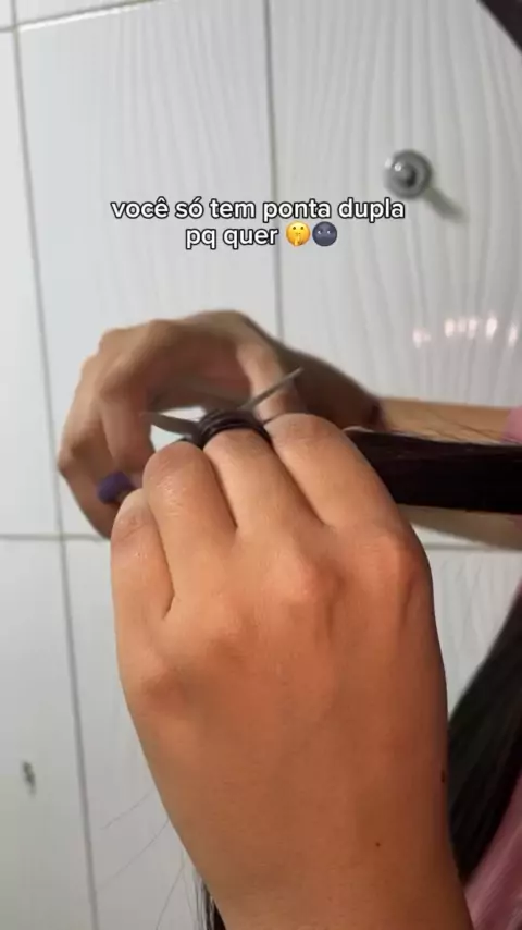🤭 imagina tirar as pontas duplas sem mexer no comprimento do cabelo? 😮‍💨 essa técnica se chama “corte bordado” e um tipo de corte que tira as pontas duplas sem precisar cortar o comprimento do cabelo basta você pegar mecha por mecha, entrelaçar entre os dedos como mostro no vídeo, e aos poucos você vai retirando toda imperfeição vantagens do corte bordado 👇🏻 Elimina pontas duplas e frizz: o corte bordado remove as pontas duplas e fios danificados com precisão, deixando o cabelo mais s