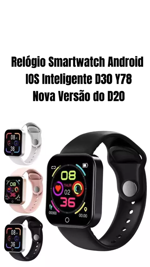 Relógio Smartwatch Android IOS Inteligente D30 Y78 Nova Versão do D20#relogiosmartwatch