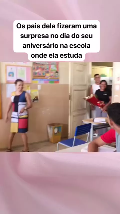 Os pais dela fizeram uma surpresa no dia do seu aniversário na escola onde ela estuda. #aniversário #Escola #Filha #Pais #emocao