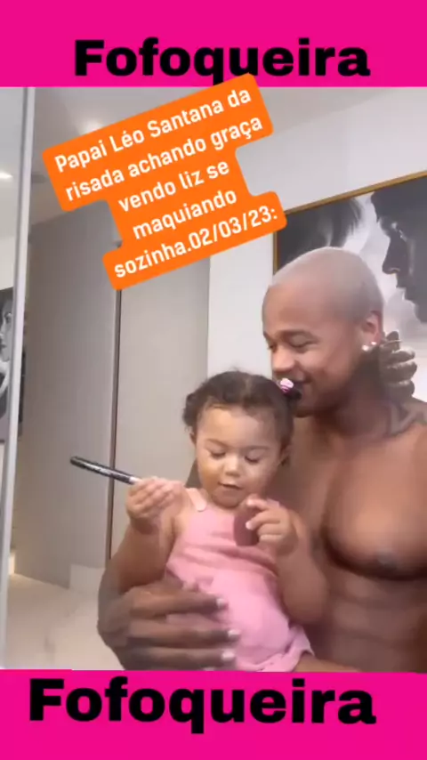 Papai Léo Santana da risada achando graça de ver Liz se maquiando sozinha. Data 02/03/23: #Noticias #liz se maquiando sozinha no colo do papai. #Noticias # #Fofoqueira # #liz # # papai # # Léo Santana # # maquiando # #