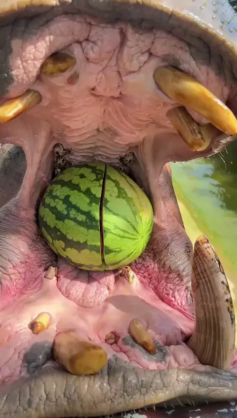 Ipopotamo comendo melancia. #zoologico #animais #ipopotamo #Sexta13AdrenalinaPura