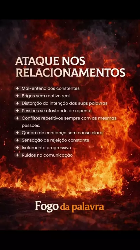 Esse tipo de ataque não começa grande, começa sutil. São pequenos mal-entendidos que vão se acumulando. Brigas por coisas mínimas revelam algo mais profundo. Palavras são distorcidas e intenções são confundidas. A confiança começa a ser abalada sem motivo claro. Pessoas se afastam e o diálogo vira ruído. Surge a sensação constante de rejeição e isolamento. O inimigo tenta dividir através da comunicação. Mas onde há luz, a confusão perde força. O fogo da Palavra traz discernimento, cura e restaur
