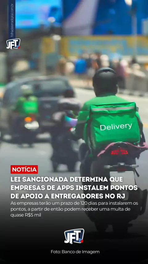 Lei sancionada determina que empresas de apps instalem pontos de apoio a entregadores no RJ. As empresas terão um prazo de 120 dias para instalarem os pontos, a partir de então, podem receber uma multa de quase R$5 mil. Leia a notícia completa no site. O link está na bio.