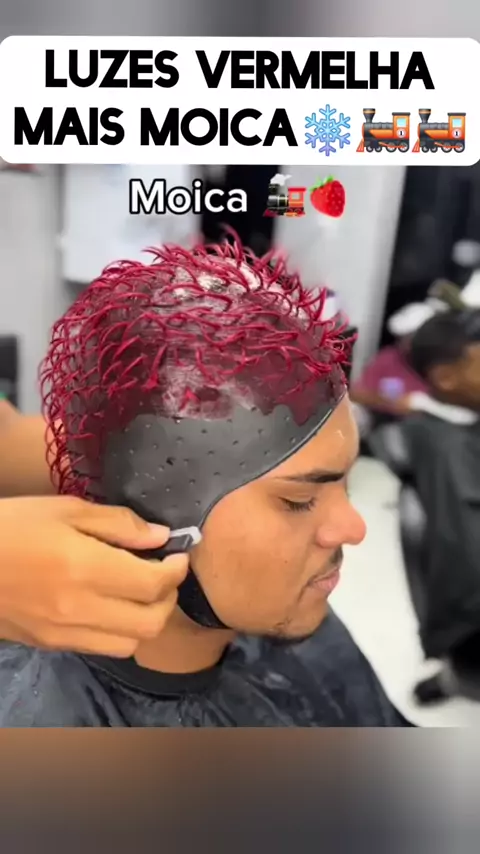 luzes vermelha mais moica❄️🚂🚂 #cabelo #fade #barbeiro #cabelo #cortedecabelo