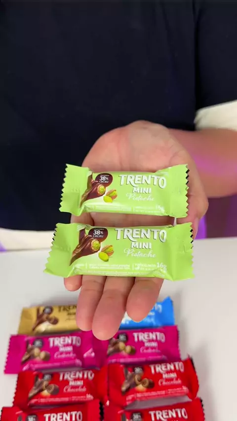 Provei o novo Trento mini sabor pistache esse sabor só está disponível na caixa da Trento, custa R$ 20,00 a caixa e vem somente 2 bombons de pistache. #trento #novidade #chocolate #pistache