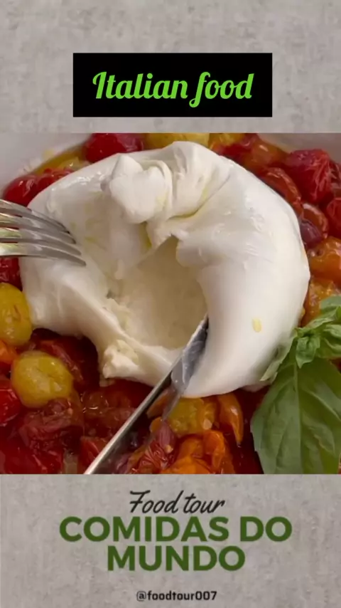 O tomate cereja, pequeno e suculento, oferece uma explosão de sabor doce e ácido. O queijo derretido, geralmente usado para cobrir os tomates, adiciona uma textura cremosa e um sabor salgado que se harmoniza perfeitamente com a acidez do tomate #food #Tour #foryou #Receita #fy
