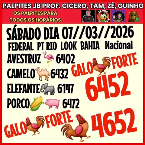 SÁBADO DIA 07//03//2026 jogo do bicho hoje
