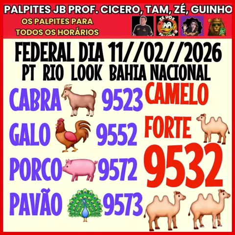 QUARTA-FEIRA DIA 11//02//2026 JOGO DO BICHO HOJE