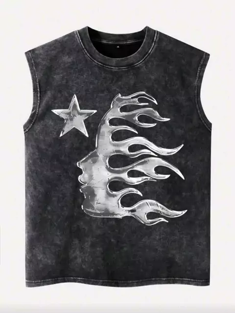 🖤 Camiseta Machão Vintage Streetwear 💸 De: R$ 89,99 🔥 Por: R$ 27,52 🚚 Frete grátis! 🧢 Nome do produto: Shwiy Regata Casual Masculina ✨ Descrição: Cor preta lavada vintage, com estampa metálica moderna em estilo flame e estrela. Ideal para uso diário, streetwear, e looks com pegada emo / anos 2000. 👕 Estilo: Primavera / Verão, oversized e confortável. fique por dentro de todas Promoção , link do nosso grupo na bio do Instagram #compras #MODA #outfit #trap