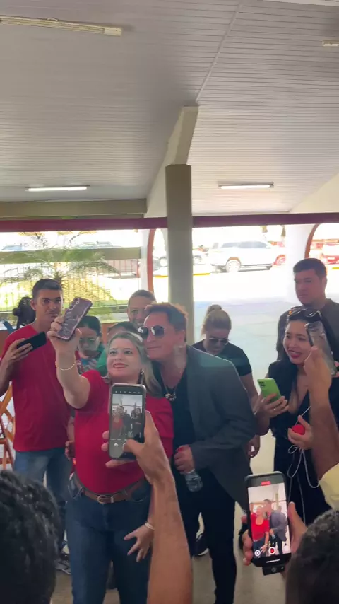 Cantor Leonardo atende vários fãs, no aeroporto de Bacabal-Ma