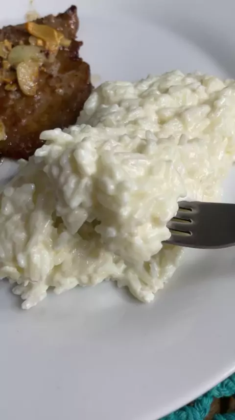 Arroz à piemontese e Bife com creme de cebola.