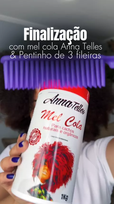 Hoje vou mostrar minha finalização usando o Mel Cola da Anna Telles junto com o pentinho de 3 fileiras! Essa técnica é incrível para definição, mas o que faz a diferença no meu cabelo crespo, que define fácil mas é poroso e ressecado, é o produto certo. Meu cabelo tem dificuldade em agradar às fitas, mas esses produtos com textura de gel são os únicos que realmente conseguem definir até as partes mais desafiadoras. Resultado impecável e super definido!#cabelocacheado #finalizacaodecachos #viral