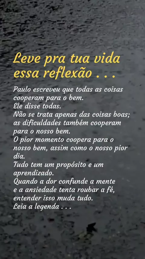 Aquilo que você está vivendo agora não chegou para te destruir. Mesmo quando dói. Mesmo quando confunde. Mesmo quando a ansiedade tenta roubar a sua fé. Paulo escreveu que todas as coisas cooperam para o bem. Ele disse todas — não só as fáceis, não só as boas. Os dias difíceis também cooperam. Os erros também cooperam. O pior momento da sua história também pode cooperar. Não porque a dor seja boa, mas porque Deus não acusa no processo. Ele sustenta enquanto você atravessa. Entender isso mu...