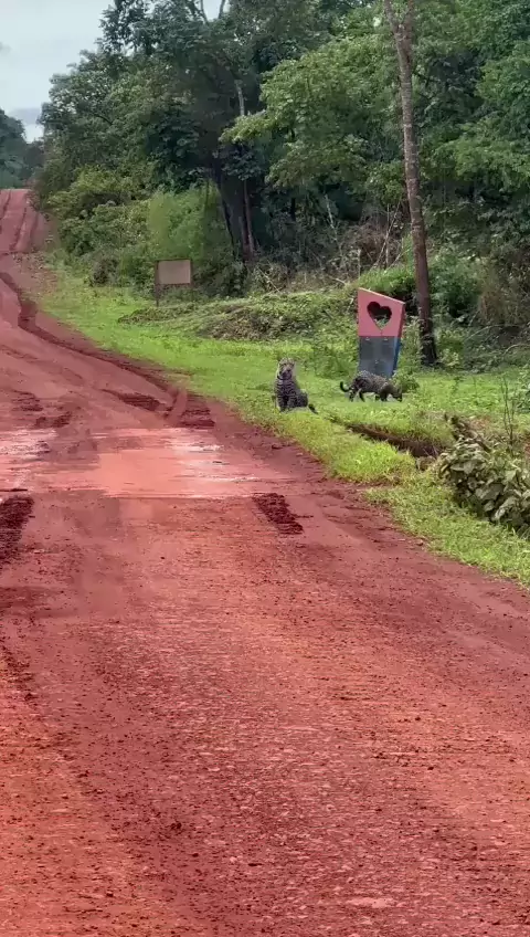 onça é vista na estrada em Água Boa