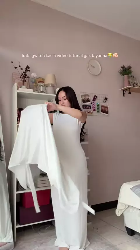 ada mulu idenya ah😭 @Fayanna The Label #outfitbukber #outfitlebaran #whitedress #longdress #bodycondress