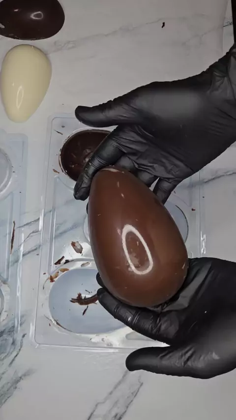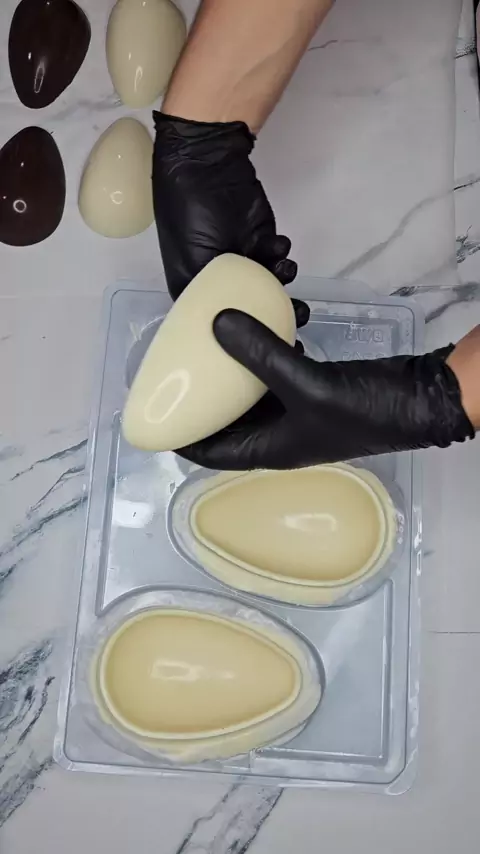 Produção das nossas casquinhas de ovos de 250g!!🐰😍😋 #pascoa #fsdoces #pascoa2025 #ovodepascoa #chocolatra