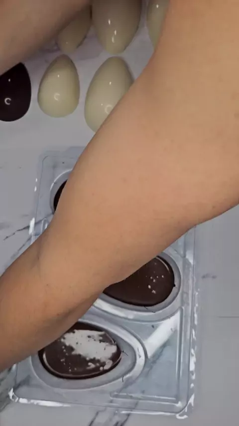 Produção das nossas casquinhas de ovos de 50g!!🐰😍😋 #pascoa #fsdoces #pascoa2025 #ovodepascoa #chocolatra