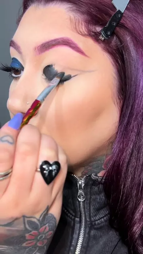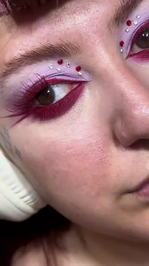 Respondendo a @vitória ッ Tutorial de maquiagem em tons de roxo, vermelho e azul 🔮🩸🦋 + delineado gráfico 🔪 . . . #makeup #makeupinspo #gothmakeup #goth #maquiagemgotica #redeyeshadow #vampiremakeup