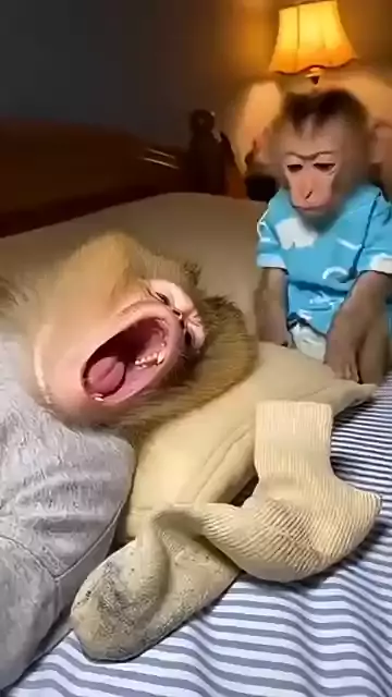O ronco estava MUITO alto… então ele usou uma MEIA 😭🧦💀 #monkey #meias #engraçado #quarto #peça