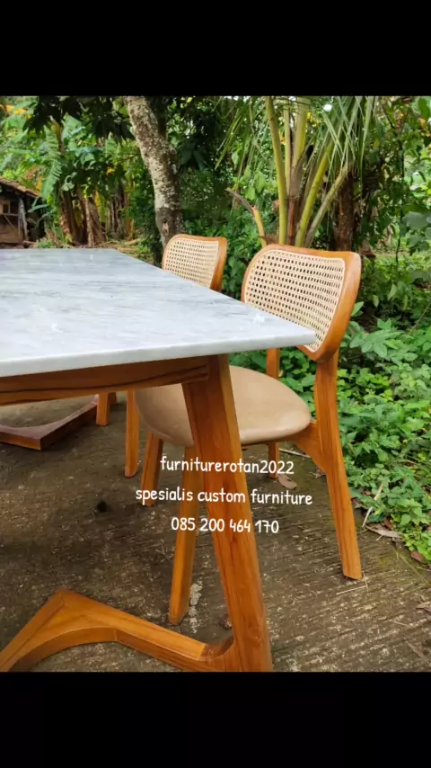 meja makan top marmer carara kursi 4 sandaran rotan warna walnut muda #furniturerotan2022 #fy𝚢p #beranda #snackvideo #mejamakan
