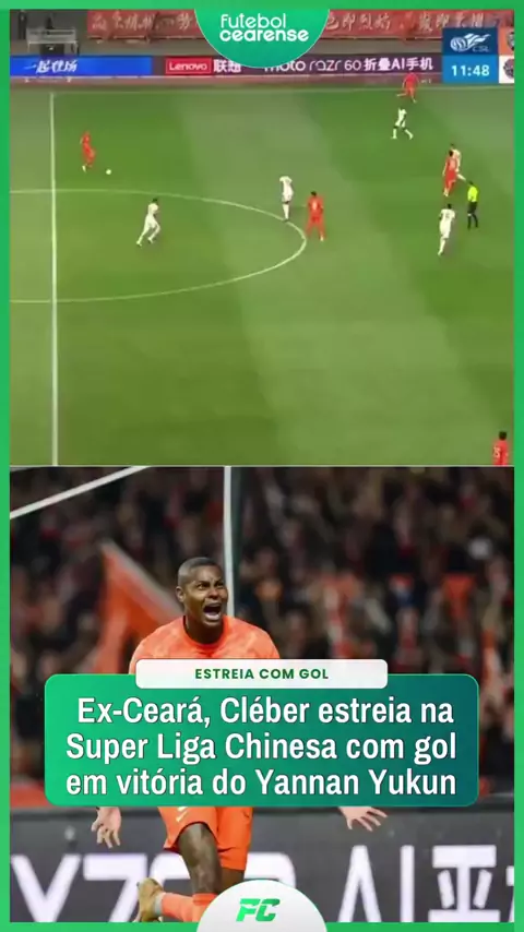 ELE CRAVA 🇨🇳 Em sua estreia na Super Liga Chinesa, o centroavante Cléber marcou um dos gols da vitória do Yannan Yukun sobre o Qingdao Hainiu por 3 a 1. O camisa 9, com passagens marcantes por Barbalha e Ceará, abriu o placar da partida.