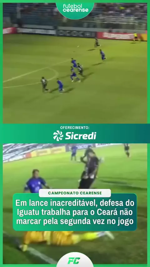 INACREDITÁVEL! 😱 Na reta final da partida entre Ceará e Iguatu, a defesa azulina trabalhou bem e evitou que o Alvinegro de Porangabuçu voltasse à frente do placar. 🎥: Canal Goat / Oferecimento: @sicrediveredas #SicrediNoFutebolCearense