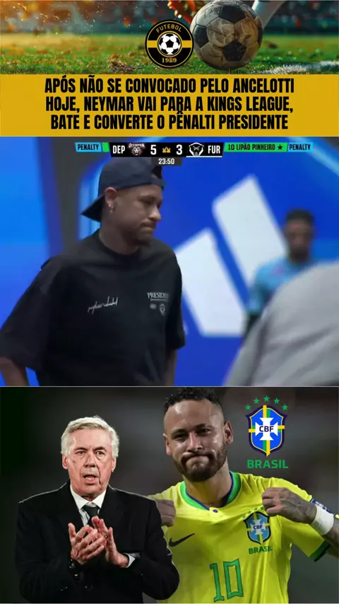 Após não se convocado pelo Ancelotti hoje, Neymar vai para a Kings League, bate e converte o pênalti presidente #esporteviral #SeleçãoBrasileira #Neymar #Neymarjr #brasil