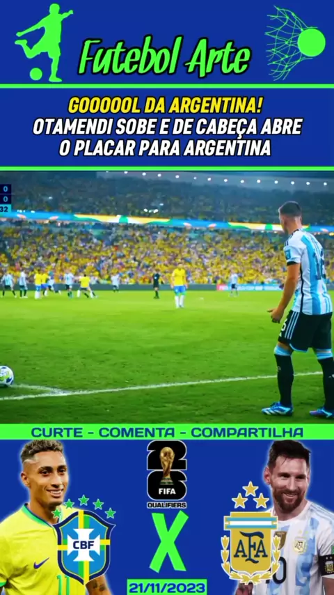 É GOL DA ARGENTINA! Gol de Otamendi! Cobrança de escanteio de Lo Celso. Otamendi sobe muito, ganha de Gabriel Magalhães e André, e cabeceia a bola na gaveta! Belo gol. #EsporteViral #KwaiFutebol #BrasilxArgentina #EliminatóriasDaCopa #SeleçãoBrasileira