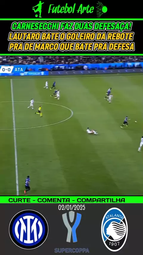ESPETÁCULAR O GOLEIRO DA ATALANTA! faz duas defesas espetacular! lautaro bate para defesa do goleiro e na sequência de Marco pega a sobra e o goleiro defende mais uma vez #InterdemilaoxAtalanta #InterdeMilão #SupercopaDaItalia #esporteviral #futebol