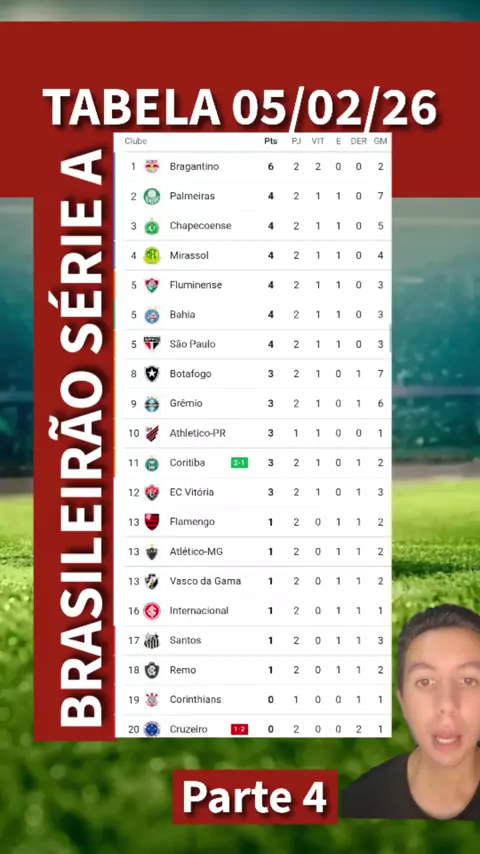 Tabela Atualizada Brasileirão Série A 05/02/26 #Brasileirão #Futebol #esporte