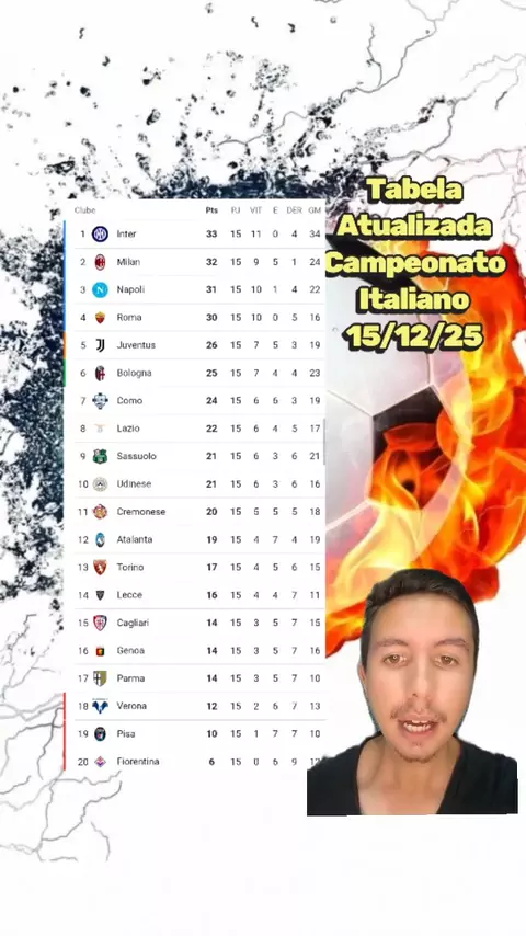 Tabela Atualizada Campeonato Italiano 15/12/25 #campeonatoitaliano #Futebol #esporte