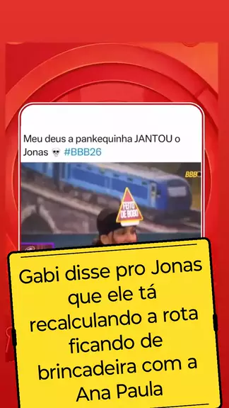 Gabi disse pro Jonas que ele tá recalculando a rota ficando de brincadeira com a Ana Paula. Gabi: “Você tá de risadinha com a Ana Paula, e toda vez mete na Ana Paula, mete na Ana Paula, mete na Ana Paula...” Ana Paula riu. #bbb26