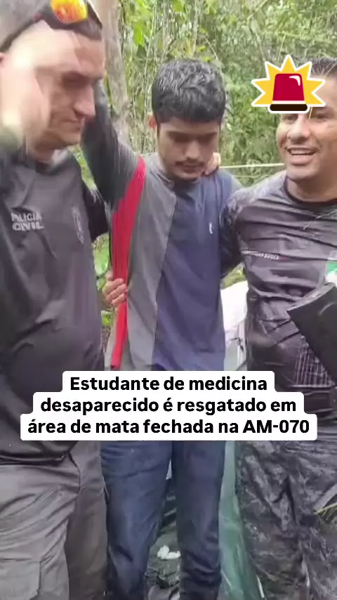 ๐ŸšจPC-AM_Apรณs dois dias desaparecido, o estudante de medicina Joรฃo Vitor do Nascimento, de 20 anos, foi encontrado debilitado em uma รกrea de mata fechada no quilรดmetro 78 da Rodovia AM-070, no municรญpio de Manacapuru, a 68 quilรดmetros de Manaus. O resgate ocorreu no sรกbado (15), em uma aรงรฃo conjunta da Polรญcia Civil do Amazonas (PC-AM) e da Polรญcia Militar. Joรฃo Vitor, morador do bairro Alvorada, na zona Oeste de Manaus, teve o desaparecimento amplamente divulgado nas redes sociais. ๐Ÿšจโš–๐Ÿ‘Š