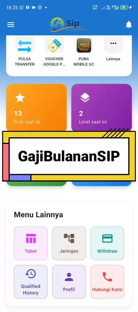 Aplikasi SIP hadir memberikan angin segar kepada Pelaku Bisnis Jaringan karena Akan mendapatkan Gajian jika anda Kualifikasi Level nya dari 150rb hingga jutaan #aplikasisip #pulsatidakkuatir #downloadaplikasisip #modal200rb #gajiansip