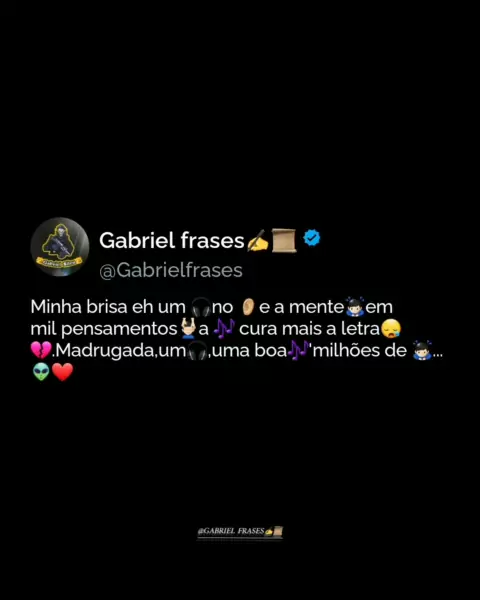 Minha brisa eh um 🎧no 👂🏼e a mente🙇🏻‍♂️em mil pensamentos💆🏻‍♂️a 🎶 cura mais a letra😪💔.Madrugada,um🎧,uma boa🎶'milhões de 🙇🏻‍♂️...👽❤️