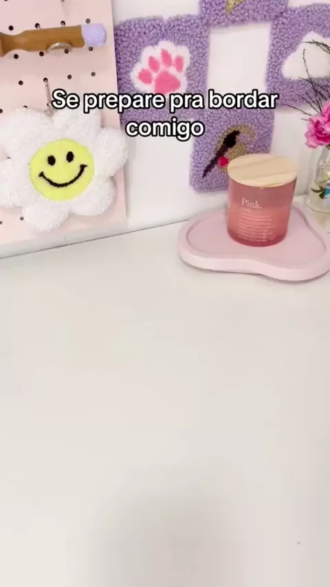 É assim que eu me preparo pro meu momento de bordado, que é quando eu relaxo e saio das telas 🎀🥹 #punchneedle #bordado #bordadorusso #artesanato #pontorusso